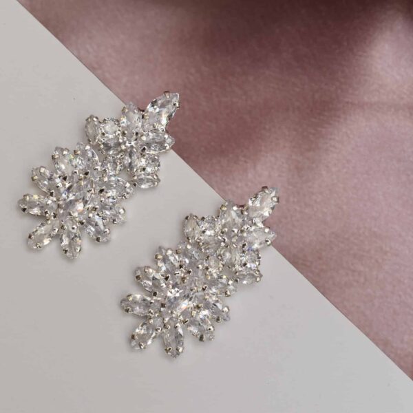 עגילים מצופים כסף, משובצים אבני זירקון ברמת גימור הגבוהה ביותר.